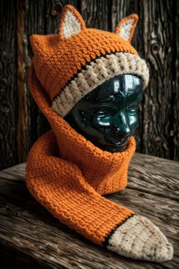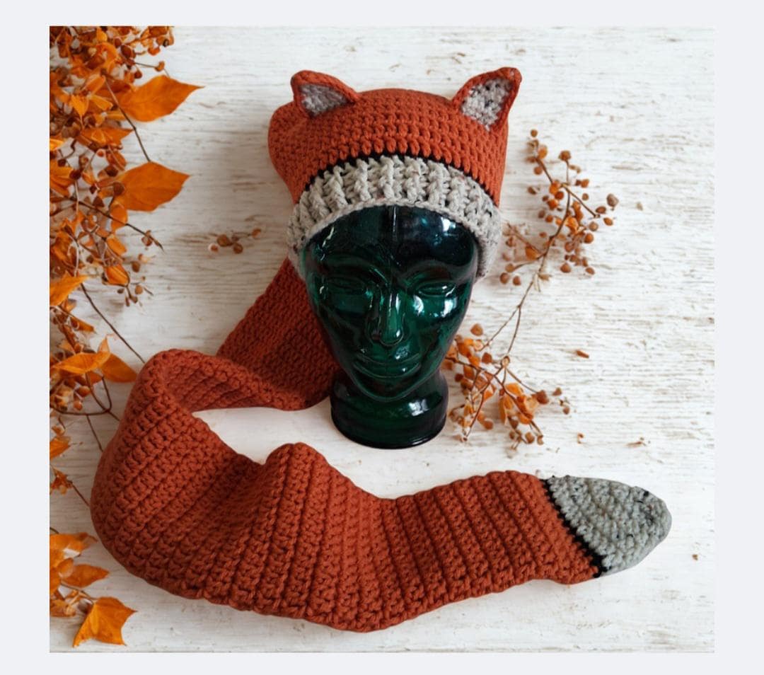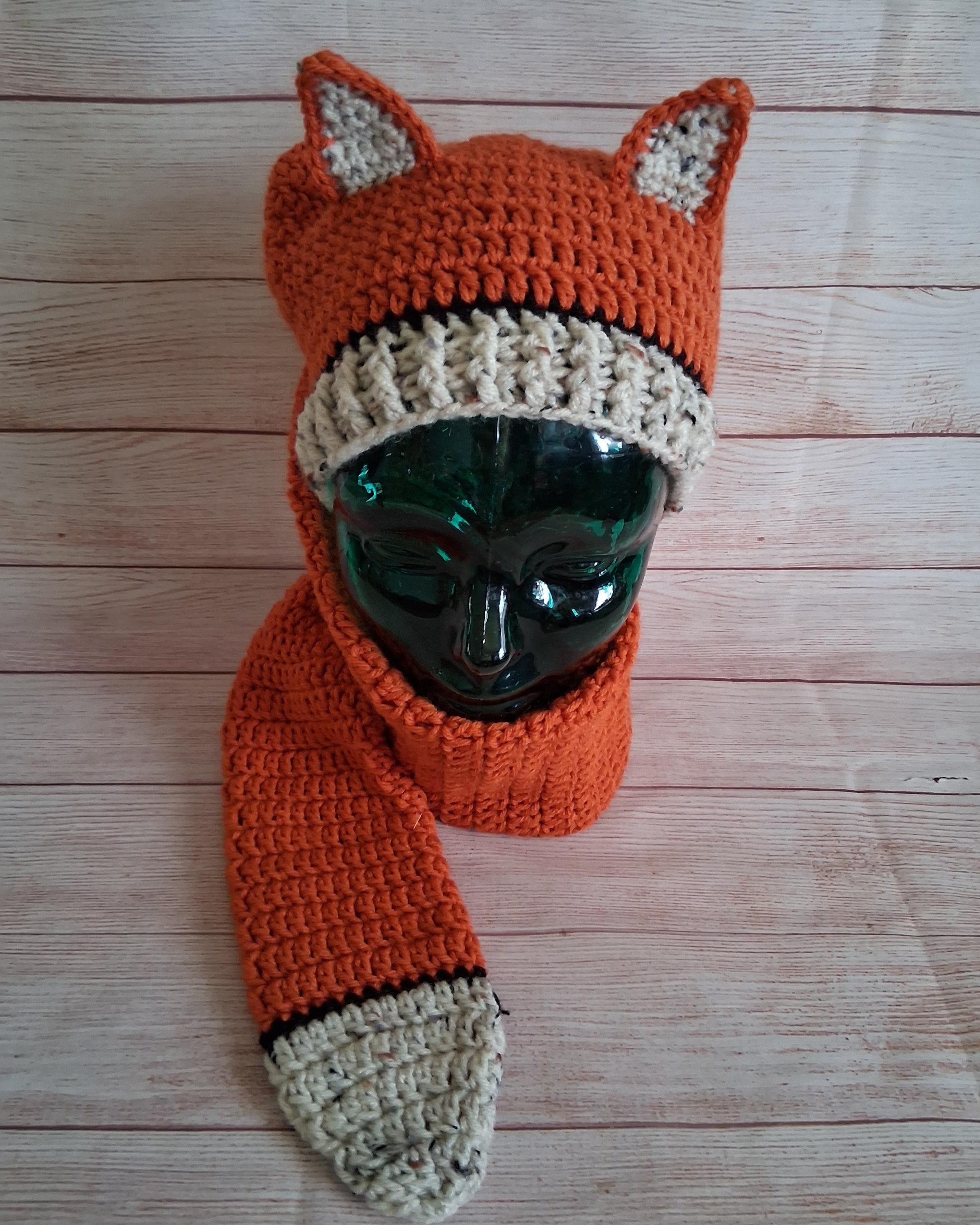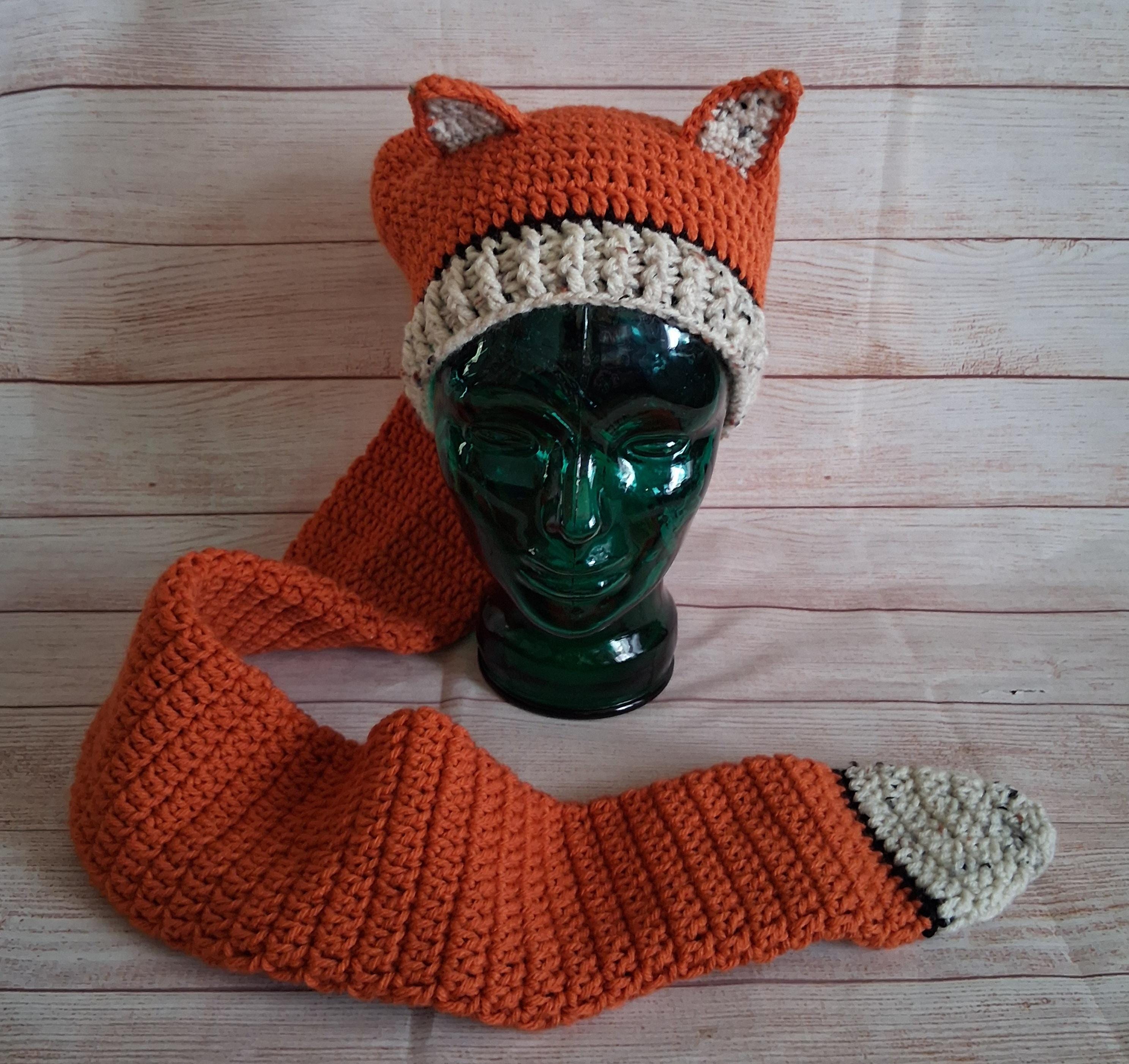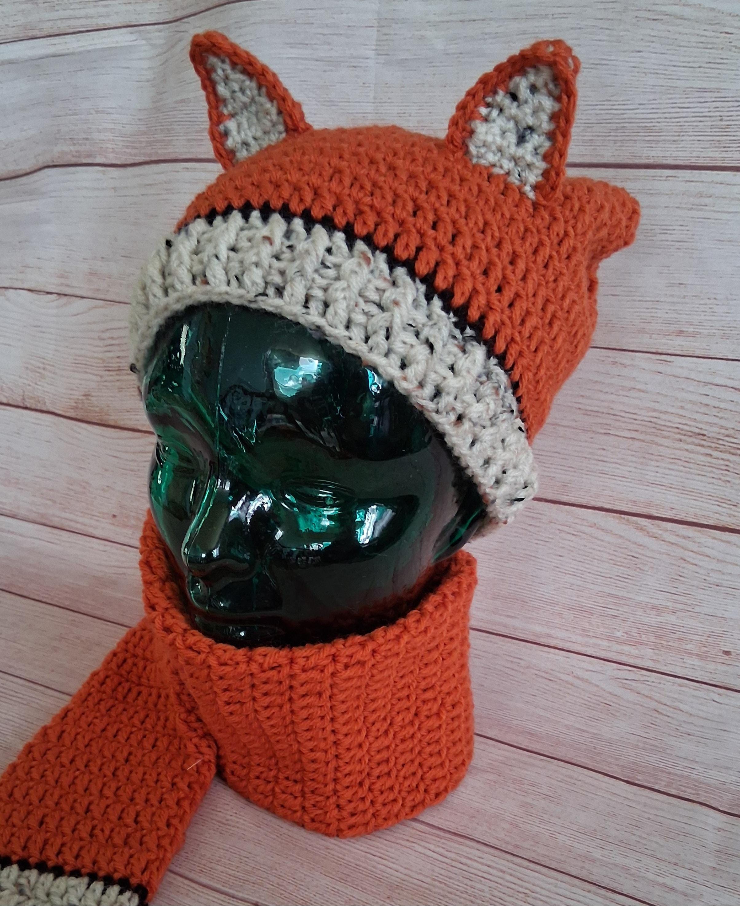 Feeling foxy? Try this Fox Hat/Scarf pattern! Fox hat with ears, and scarf tail that wraps around the neck, too cute!